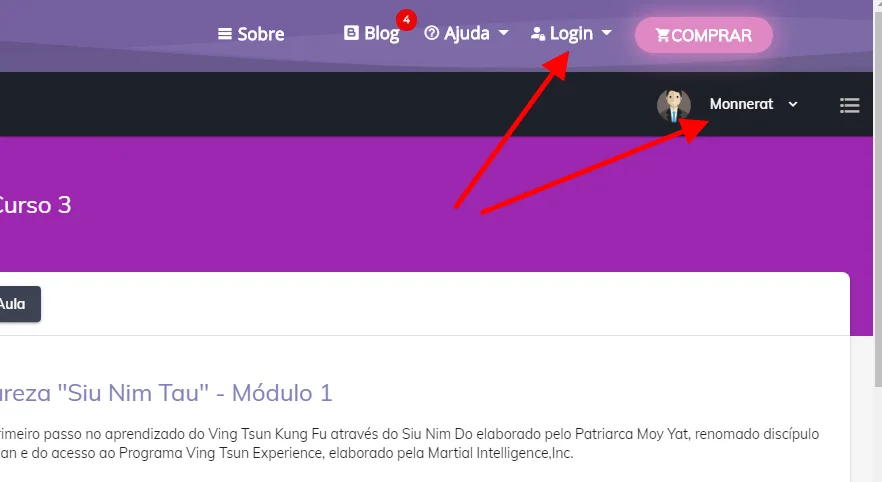 Porém nossa equipe de desenvolvedores conseguiu melhorar isso, de forma a também proporcionar que ao fazer o LOGIN GERAL em vidakungfu.online , o aluno ao acessar o Dashboard e lá escolher o MINICURSO correspondente, irá verificar que, por exemplo, ao acessar o MINICURSO Nº4 ele já estará logado, sem a necessidade de se logar novamente dentro do módulo do MC.